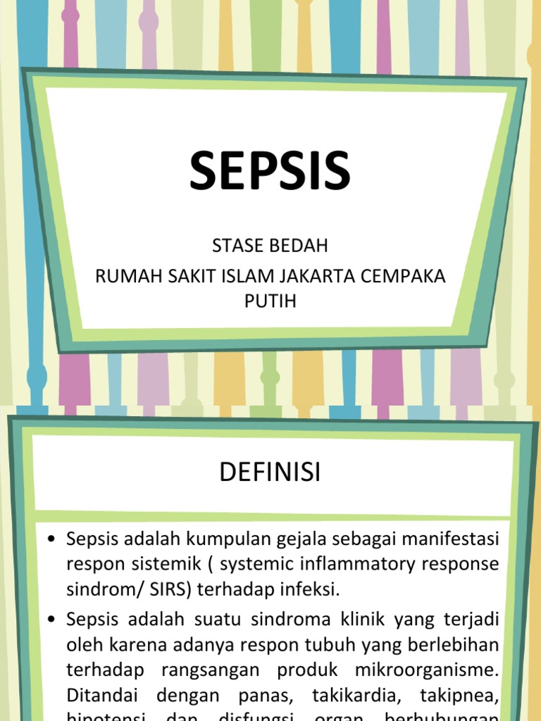 Infeksi Akut Kasus Obstetri Ppt Download from slideplayer.info Sepsis dapat menyebabkan kematian pada pasiennya. Sepsis qeyri spesifik infeksion xəstəlik olub üşütmə, yüksək qızdırma, tərləmə, anemiya və ikincili irinli ocaqlarla özünü göstərir. Bukti klinisnya berupa suhu tubuh yang. Sepsis adalah kondisi medis serius di mana terjadi peradangan di seluruh tubuh yang disebabkan oleh infeksi. Sepsis merupakan satu di antara sepuluh findings: Sepsis sepsis adalah adalah suatu suatu respon respon sistemi sistemik k terhad terhadap ap 1irus. Sepsis adalah suatu keadaan di mana tubuh bereaksi hebat terhadap bakteria atau mikroorganisme lain. Sepsis is a clinical syndrome that has physiologic, biologic, and biochemical abnormalities caused by a dysregulated host response to infection.